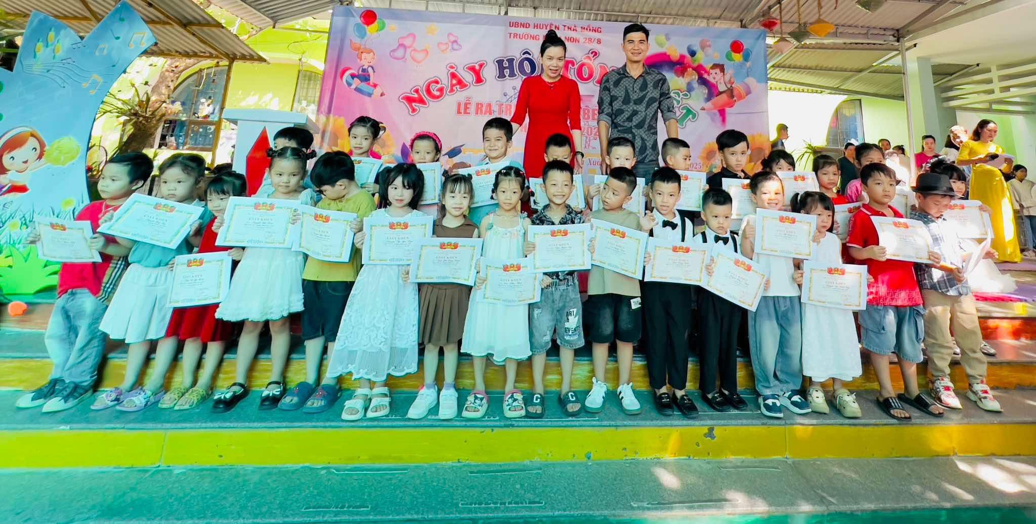 🎊🌈𝐋𝐄̂̃ 𝐓𝐎̂̉𝐍𝐆 𝐊𝐄̂́𝐓 𝐍𝐀̆𝐌 𝐇𝐎̣𝐂 𝟐𝟎24-2025🎉 🏨👩🎓 🍀 🌤 Một năm học nữa lại trôi qua, hòa cùng tiếng ve rộn rã là không khí ngập tràn cảm xúc trong ngày Lễ tổng kết năm học 2024– 2025 của Trường Mầm non 28/8 huyện Trà Bồng. 🏢 (Ngày 22/5/2025) Trường mầm non 28/8tổ chức lễ tổng kết năm học . Buổi lễ tổng kết là cơ hội để các cô và trò cùng nhìn lại hành trình năm học vừa qua. Đồng thời cũng là dịp để cha mẹ chứng kiến sự trưởng thành vượt bậc của các con, đó chính là hành trình ghi dấu sự cố gắng, nỗ lực không ngừng nghỉ trong nâng cao chất lượng chăm sóc và giáo dục của nhà trường và đó cũng chính là hành trình ghi dấu sự tiến bộ, trưởng thành của tất cả các con. 🍀🍀🍀🍀🍀🍀🍀🍀🍀🍀🍀🍀🍀❤️❤️ Trong suốt hành trình vừa qua trường Mầm non 28/8 đã trở thành mái nhà thứ hai đầy ắp tình yêu thương của cả cô và trò, khi mỗi ngày cô cùng các con khám phá biết bao điều thú vị, cùng ghi lại những dấu ấn kỷ niệm tuyệt vời và trên hết là cùng nhau xây đắp tình yêu thương vô bờ bến. Về tham dự buổi lễ có đại biểu đại diện cho chính quyền địa phương, các cô giáo trong nhà trường, Hội phụ huynh học sinh và đặc biệt là sự góp mặt của 288/288 cháu.💐 🌹Nhà trường xin chân thành cảm ơn Quý bậc phụ huynh đã luôn tin tưởng và đồng hành cùng Nhà trường trong mọi hoạt động học tập của các con! ❤️ Trân trọng❤️