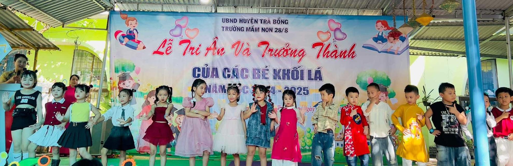 Một năm học với rất nhiều những kỷ niệm đẹp, những nụ cười, sự hạnh phúc và yêu thương của cô và trò, của bạn bè dành cho nhau dường như vẫn còn đọng lại trong kí ức mỗi cô giáo và các bé, nhưng cuộc vui nào rồi cũng sẽ phải chia tay. Và cũng đến lúc các con cũng phải tạm biệt mái trường mầm non 28/8 thân yêu, để bước vào cấp học mới.